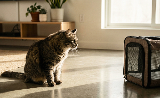 За несколько дней до переезда стоит достать переноску и оставить её в доступном месте, положив внутрь плед или подстилку с привычным запахом. Пусть кошка воспринимает её не как «сигнал бедствия», а как обычный предмет. Если питомец тревожный, помогут специальные феромоны или успокаивающие спреи — они создают ощущение безопасности и снижают уровень стресса.