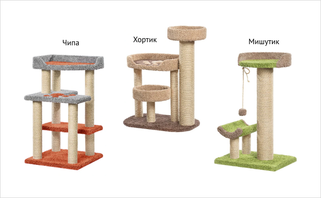 Также стоит обратить внимание на Мишутик — угловая когтеточка-комплекс с игрушкой, седлом и лежанкой, рассчитанная для мейн-куна и других больших кошек.