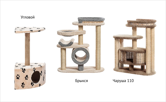 Для активных питомцев, любящих прыгать и лазать, отлично подойдет Чаруша 110 — устойчивый комплекс высотой 110 см, с плетёным домиком, лежанкой и промежуточной ступенькой. А для обладателей нескольких кошек будет очень удобен Брыкся — многоярусный комплекс с площадками, столбиками для точения когтей и зонами для отдыха.