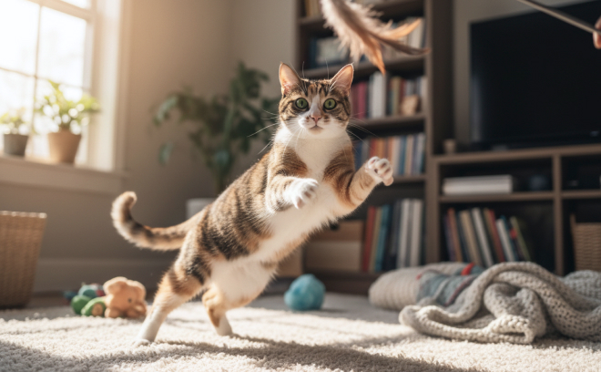 Недостаток активности и стимуляции — частая причина проблем с поведением и здоровьем домашних кошек. В природной среде хищник тратит много энергии на охоту, исследование территории и социальные взаимодействия. В домашних условиях большинство этих потребностей ограничено: нет необходимости добывать пищу, пространство скучно и предсказуемо, а хозяева заняты и редко уделяют время активным играм. В результате животное может страдать от апатии, набора лишнего веса, агрессии или разрушительных привычек, таких как раздирание мебели и ночные «забеги».