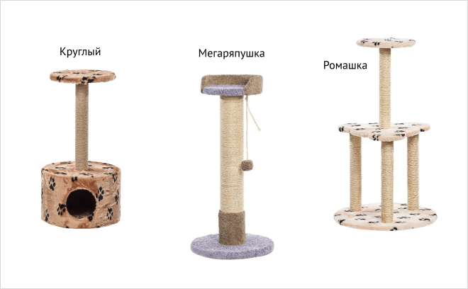 Если же хочется дать животному больше стимуляции и игровых возможностей — обратите внимание на когтеточки-столбики из каталога Пушок. Например, модель Мегаряпушка — высокая угловая когтеточка с игрушкой и лежанкой — даёт возможность вытягиваться, царапать, взбираться и при этом отдыхать на удобной площадке. Ромашка — когтеточка с лежанкой и столбиками — отлично подходит для котят или взрослой кошки, которой не нужна сверхвысокая конструкция.