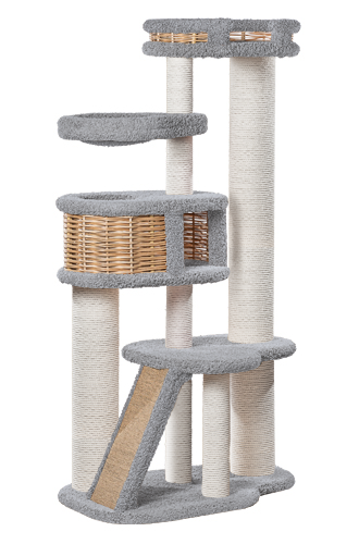 Я сразу начала его обследовать: сначала поточила о столбики свои коготки, потом запрыгнула на мягкую лежаночку первого этажа, потом перебралась на второй этаж, где был очень уютный и красивый плетёный домик. Там я развалилась и долго лежала, не веря своему счастью. Затем я запрыгнула в большой круглый гамак на третьем этаже и с удовольствием наблюдала в окно за птичками. Гамачок — это отдельная песня, в нем так удобно и сладко спится... Я бы дала нобелевскую премию тому, кто придумал это чудо из чудес! А на четвёртом этаже была просторная терраса и наблюдательный пункт за моими родителями! Столбики, толстые и тонкие, были обтянуты очень красивым и приятным для лапок канатом. Я то забиралась по ним вверх, то спускалась вниз, то радостно пыталась драть эти столбики. Все полочки были отделаны мягким приятным ковролином — моему восторгу не было предела!